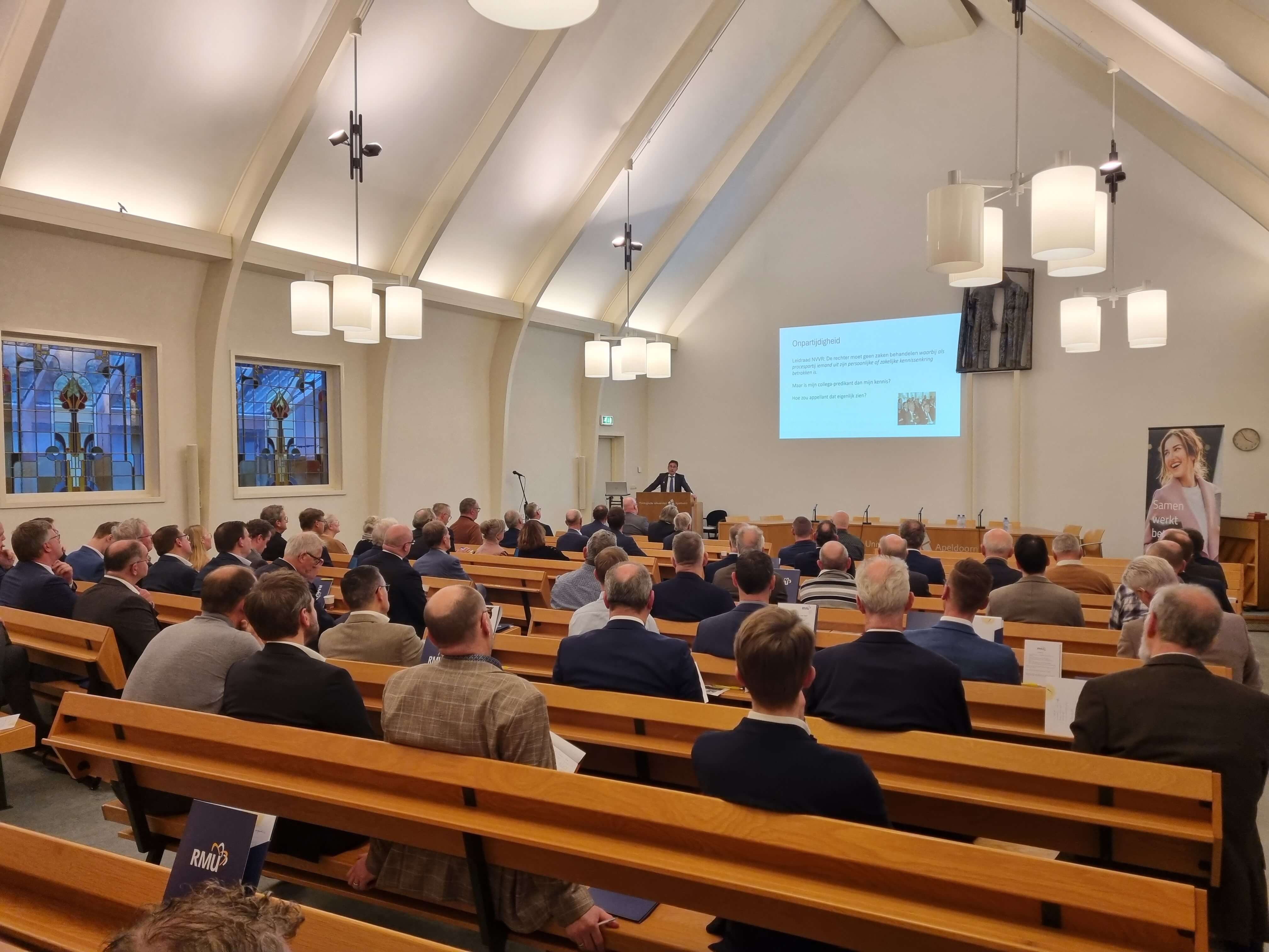 Een van de sprekers was prof. mr. dr. W.A. Zondag, die namens de RMU de leerstoel Kerk, Recht en Samenleving aan de TUA bekleedt. Hij ging in op de verschillende vormen van leiderschapsuitoefening binnen de kerk. De andere sprekers waren mr. H. de Hek (raadsheer bij Gerechtshof Arnhem – Leeuwarden) en drs. D.D. Both (die bij de TUA promoveert op leiderschap). Iedere spreker koos een eigen invalshoek op het thema en zijn visie op de juridische en ethische dimensies van leiderschap in de kerk. Zo ging het onder meer over de noodzaak van transparantie en de bescherming van kwetsbare individuen tegen de structuren en, soms erger, tegen concentratie van macht. De sprekers benadrukten het belang van heldere regels en toezichtmechanismen die dit kunnen voorkomen.